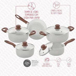 Jogo De Panelas Hauskraft Revestimento Ceramico Indução 5 Peças Antiaderente Florença Vanilla