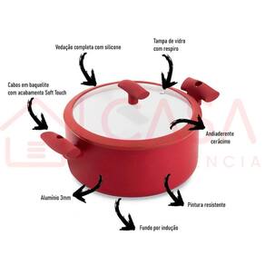 Jogo de Panelas Hercules Revestimento Ceramico Indução 4 Peças Antiaderente Vermelho Descrição: A linha Soft Touch da Hercules garante melhor desempenho, funcionalidade e qualidade para a sua cozinha e no preparo das refeições. Com revestimento antiaderente cerâmico. Produzida com materiais resistentes: Alumínio, silicone, vidro e baquelite. Ideal para uso em fogão convencional, fogão halogênio e de indução. Não utilizar no forno, micro-ondas, geladeira e freezer. Sua cozinha pode ser prática, saudável e muito bonita. As panelas da Hércules oferecem o que há de mais moderno para o preparo das refeições diárias. Características: Espessura de 3 milímetros, tampa de vidro com acabamento em silicone, além de muito bonita causa impressão de sofisticação na cozinha. Os cabos em silicone soft touch dão maciez e estabilidade no manuseio da panela além de serem isotérmicos e não esquentarem. O Interior antiaderente em cerâmica facilita o preparo e a limpeza além de não liberar componentes tóxicos na preparação dos alimentos, a construção da panela com fundo especial possibilita sua utilização. - Pode ir em lava-louças; - Pode ir em fogões por indução; - Material Panelas, frigideira e caçarolas : Alumínio, Silicone, Vidro e Baquelite. Composição: Quantidade 4 Peças; 1- Caçarola 20 x 9 cm - espessura 3mm - 2.5L; 1- Panela 18 x 9 cm - espessura 3mm - 1.75L; 1- Panela 20 x 9 cm - espessura 3mm - 2.5L; 1- Frigideira 20 x 5cm - espessura 3mm - 1.2L Especificações: Marca: Hércules; Modelo: Soft Touch; : 3 meses. ---- Aqui na Casa & Tendência você encontra os melhores utensílios domésticos e tudo que você precisa para sua cozinha ---- Marca: Não Informado
