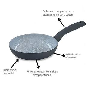 Jogo de Panelas Hercules Revestimento Ceramico Indução 5 Peças Antiaderente Cinza Descrição: A linha Soft Touch da Hercules garante melhor desempenho, funcionalidade e qualidade para a sua cozinha e no preparo das refeições. Com revestimento antiaderente cerâmico. Produzida com materiais resistentes: Alumínio, silicone, vidro e baquelite. Ideal para uso em fogão convencional, fogão halogênio e de indução. Não utilizar no forno, micro-ondas, geladeira e freezer. Sua cozinha pode ser prática, saudável e muito bonita. As panelas da Hércules oferecem o que há de mais moderno para o preparo das refeições diárias. Características: Espessura de 3 milímetros, tampa de vidro com acabamento em silicone, além de muito bonita causa impressão de sofisticação na cozinha. Os cabos em silicone soft touch dão maciez e estabilidade no manuseio da panela além de serem isotérmicos e não esquentarem. O Interior antiaderente em cerâmica facilita o preparo e a limpeza além de não liberar componentes tóxicos na preparação dos alimentos, a construção da panela com fundo especial possibilita sua utilização. - Pode ir em lava-louças; - Pode ir em fogões por indução; - Material Panelas, frigideira e caçarolas : Alumínio, Silicone, Vidro e Baquelite. Composição: Quantidade 5 Peças; 1- Caçarola 20 x 9 cm - espessura 3mm - 2.5L; 1- Panela 18 x 9 cm - espessura 3mm - 1.75L; 1- Panela 20 x 9 cm - espessura 3mm - 2.5L; 1- Frigideira 20 x 5cm - espessura 3mm - 1.2L; 1- Grill 30 x 1cm - espessura 3mm - 0,8L; Especificações: Marca: Hércules; Modelo: Soft Touch; : 3 meses.