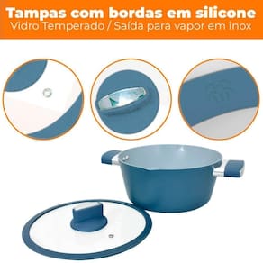 Conjunto com 4 Panelas de Indução Chicago Azul Alumínio com Revestimento Cerâmico - Casambiente