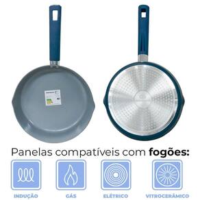 Conjunto com 4 Panelas de Indução Chicago Azul Alumínio com Revestimento Cerâmico - Casambiente