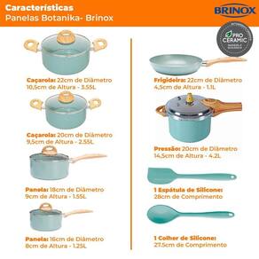 Jogo De Panelas De Indução Com Panela De Pressão Ceramiclife Botanika 8 Peças - Brinox 4815/102 4952/108 2253/331 2253/332