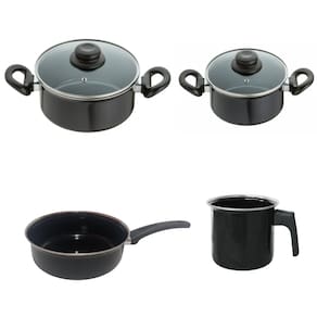 Este produto produzido em aço e é revestido por dupla camada de esmalte, sendo assim mantendo o calor por mais tempo, cozimento rápido, economizando até 30% de gás e energia. 4 unidades de panelas que possuem alças reforçadas e confortáveis mantendo sempre um padrão elegante.