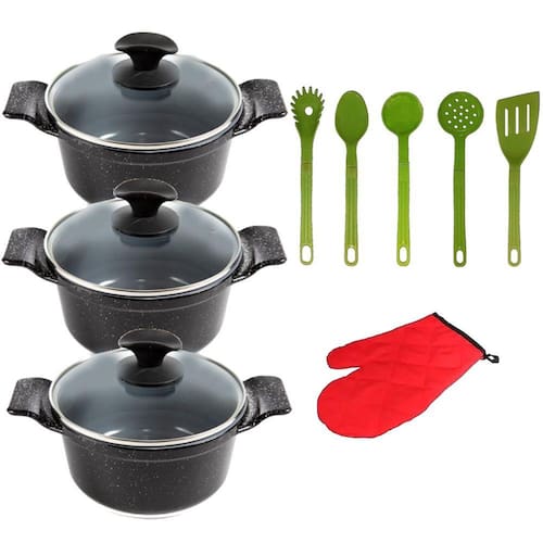 Jogo Panelas Preto Liso Cerâmica Talher Javali AAL 26A30Cm