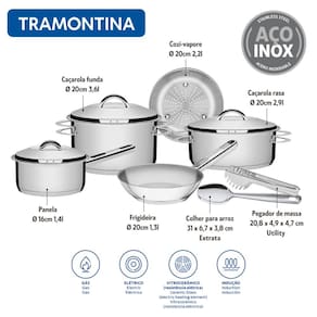 Jogo Panelas Solar Inox 5 Peças Fundo Triplo Colher e Pegador Tramontina
