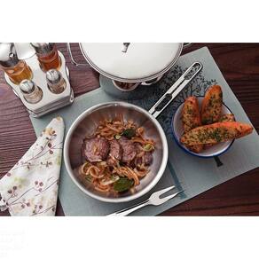 Economiza tempo e energia: o segredo está no fundo triplo (aço inox + alumínio + aço inox), que distribui o calor uniformemente, proporcionando um cozimento mais rápido. Por isso, você pode manter o fogo baixo durante todo o preparo e, assim, poupar energia. Além disso, a panela toda em aço inox pode ir ao forno para gratinar ou finalizar pratos, na temperatura máxima de 260C.