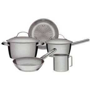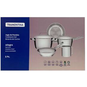 o jogo de panelas tramontina 5 peças da linha allegra vai virar seu melhor amigo na cozinha. São projetadas para facilitar a preparação das mais variadas receitas. Elas são produzidas em aço inox e trazem a alta durabilidade e bom gosto do material. São ainda muito estilosas, tornando a aparência da sua cozinha e mesa mais interessante e bonita. Apresentam ainda fundo triplo aço inox + alumínio + aço inox , característica que distribui o calor de forma igual,