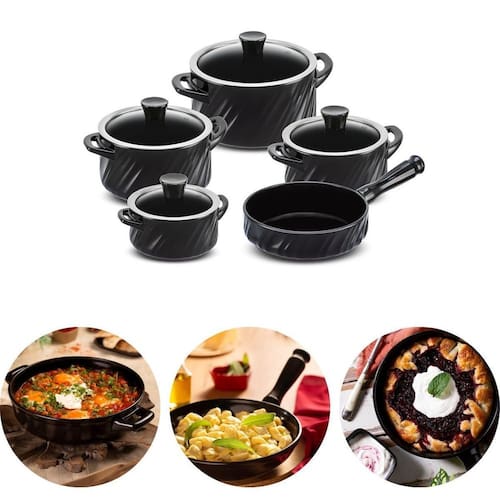 Descubra a praticidade e qualidade do Jogo de Panelas Ceraflame Cerâmica Twist 5 Pç preto Com sua tampa de vidro, você pode visualizar o alimento durante o preparo e ainda levar as panelas direto à mesa, armazenar na geladeira ou freezer, reaquecer no micro-ondas e lavar na máquina de lavar louças. A linha Twist indução garante a ausência de contaminação por resíduos metálicos, possui alta resistência a choques térmicos e pode ser Utilizado em fogões a gás, de indução, vitrocerâmicos, elétricos e a lenha, forno de micro-ondas e tradicional, geladeira e lava-louças. 1 Caçarola 14cm; 900ml 1 Caçarola 16cm; 1.5L 1 Caçarola 18cm; 2L 1 Caçarola 20cm; 3L 1 Frigideira sem tampa 20cm; 1L Marca: Não Informado