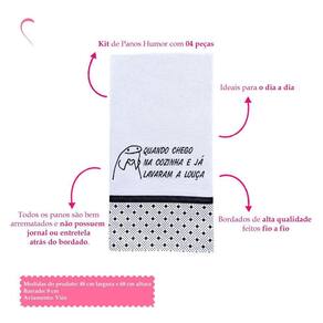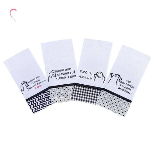 Contém: 04 panos de prato 48 cm x 68 cm Composição: 100% Algodão Acabamento: overloque Diferencial: bordado do Meme Bento Florks