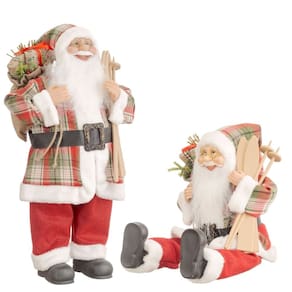 Jogo Papai Noel Decor Casaco Xadrez Em pé e Sentado Saco de Presentes e Ski 60cm e 45cm - Bela Flor