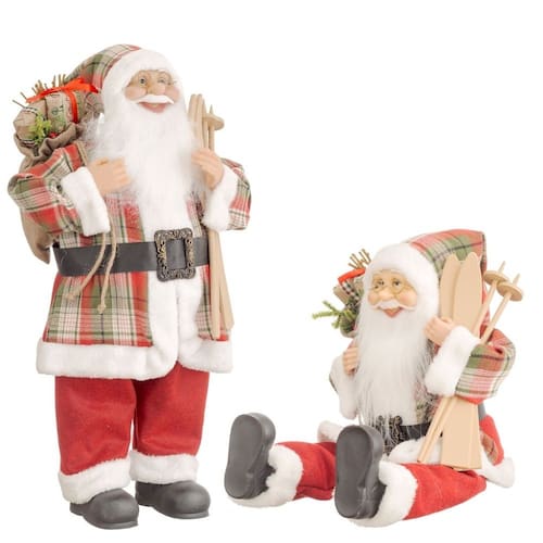 Encante sua decoração natalina com este sofisticado Jogo Papai Noel decorativo de 60cm em pé e 45cm sentado. Vestido com um elegante casaco xadrez vermelho, ele carrega um saco de presentes decorado e um par de skis, simbolizando o espírito aventureiro do Natal. Seu gorrinho xadrez com guizo adiciona um toque festivo e charmoso, perfeito para destacar em qualquer ambiente.