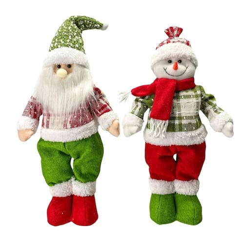 Adicione um toque de diversão e charme à sua decoração natalina com o Jogo Papai Noel e Boneco de Neve em pé, modelo decorativo Funny. Com 40 cm de altura, este adorável Boneco de Neve veste uma roupa de tricô nos tradicionais tons de verde e vermelho, transmitindo o espírito natalino com um estilo descontraído e acolhedor. Feito em pelúcia de alta qualidade, ele é perfeito para decorar qualquer espaço da sua casa, seja na sala, no hall de entrada ou perto da árvore de Natal. A escolha ideal para quem deseja um Papai Noel que traga alegria e personalidade à sua decoração de Natal.