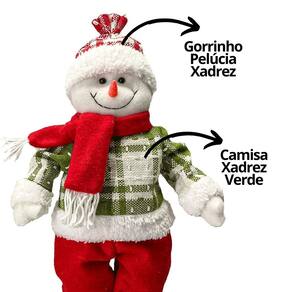 -01 Unidade Boneco de Neve Em pé Pelúcia Funny Tricot Verde e Vermelho 40cm - Magizi