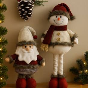 Jogo Papai Noel e Boneco de Neve Pelúcia Retrátil com Pernas Extensíveis – 36cm até 50cm
