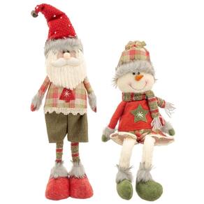 Jogo Papai Noel Em pé e Boneco de Neve Sentado Pelúcia Prime 56cm Xadrez Verde e Vermelho - Bela Flor