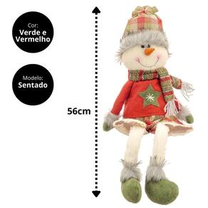 -01 Unidade Boneco de Neve Decorativo Sentado – 56cm, Pelúcia Prime com Traje Xadrez Vermelho e Verde e Cachecol