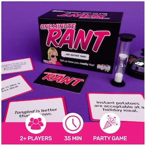 Spin Master Games, SolidRoots One Minute Rant - O jogo para pessoas que amam controvérsia | Jogos adultos para noite de jogos | Jogos de festa para adultos | Jogos para adultos para 3-6 jogadores a - PRONTO, SET, RANT: Tudo o que você precisa fazer é reclamar por 60 segundos sobre o tópico no cartão. Dica - se você tiver opiniões fortes - isso é para você - DING THE OUTROS JOGADORES: O objetivo é ser aquele que fala quando o temporizador acabar. Então, se outra pessoa estiver falando, toque a campainha se hesitar, tropeçar ou repetir e assumir o controle com o tempo restante. Não faça você mesmo - PARCERIA COM WHOA SUSANNAH: Conhecida como mãe, esposa, humorista, podcaster e autora - Os seguidores sociais de Whoa Susannah estão a par de seus famosos discursos sobre paternidade, falas escolares, casamento e vida no sul - SPIN MASTER GAMES: Procurando jogos para a noite de jogos em família? Nossos brinquedos e jogos oferecem uma variedade de jogos infantis a jogos de tabuleiro para adultos, quebra-cabeças para adultos e crianças e jogos ao ar livre - Jogos de tabuleiro para a noite em família: mude com jogos de quintal, jogos de festa e jogos para casais. Não se esqueça de quebra-cabeças de 1000 peças para adultos e jogos de cartas para adultos também, além de jogos de tabuleiro para crianças de 8 a 12 anos e jogos para crianças de 4 a 8 anos - Inclui 100 cartões de opinião, 1 temporizador de areia, 1 campainha - Coberto pelo compromisso Spin Master Care. Veja abaixo os detalhes completos