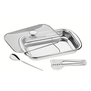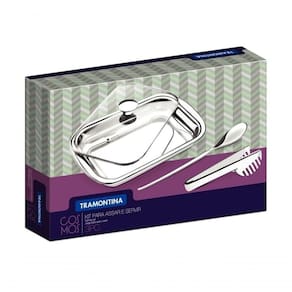 Jogo Para Assar E Servir Tramontina Cosmos Aço Inox E Tampa De Vidro 3 Peças Servirbem é um verdadeiro presente para o dia-a-dia. Travessas, baixelas esaladeiras recebem, com bom gosto e beleza, os pequenos prazeres daculinária. É a Tramontina cuidando de todos os detalhes para que asrefeições sejam sempre únicas. Recomendações de Uso: Antes do uso: Antes de utilizar o , remova as eventuais etiquetas e lave-o com água quente e de uso:Durante a lavagem use somente esponja macia, outros tipos de produtos, como palha de aço, poderão riscar ou prejudicar o brilho do produto. Enxágue bem a peça a fim de remover totalmente os resíduos dos produtos de limpeza, que por serem abrasivos, podem danificar o inox. Após a lavagem enxugue-o, pois as substâncias químicas contidas na água poderão causar manchas. Sempre que possível use água quente, pois renova o brilho do produto. Evite o da peça com superfícies quentes, pois podem provocar a descoloração do produto. Quando usar a máquina de lavar louça, recomendamos retirar o produto logo que tenha terminado o ciclo enxaguar, a fim de que o mesmo seja secado manualmente.- Foto meramente ilustrativa.- Embalagem litografada. Informações Adicionais: