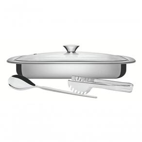 - Em aço inoxidável, altamente durável, mantém as caracteríticas , preservando a beleza, a higiene e a durabilidade do material.- Acabamento em brilho e bordas foscas.- Design moderno.- Pode ir à máquina de lavar louças.- a Tampa de vidro transparente permite visualizar os alimentos. Ean: 7891116062371