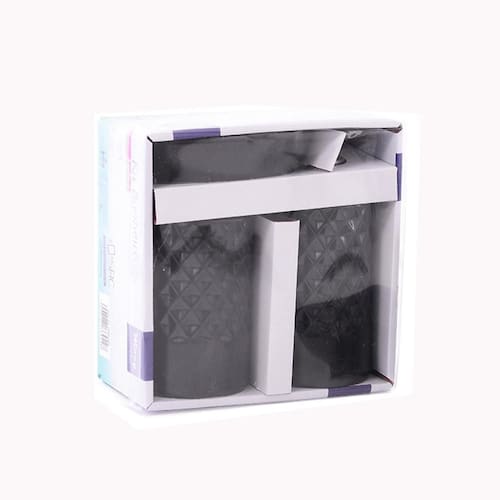 Informações adicionais: Ean: 7908281339228 Validade: indeterminada Capacidade: 380ml Tamanho aproximado: Saboneteira - 12,2x8x3cm Porta escovas - 11,3x7,5cm de Porta sabonete liquido - 16,7x7,5cm de Tamanho aproximado da caixa: a:16,5xl:18cm Peso aproximado: 810g Tipo de produto: jogo para banheiro scale com 3 pecas na caixa Cor: preto Composição: porcelana e plastico