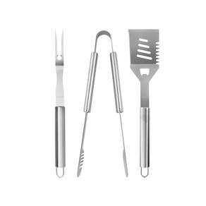 Jogo Para Churrasco Bbq 3 Peças Oster é perfeito para os momentos de confraternização em família. Composto por 3 ferramentas essenciais feitas em aço inoxidável resistente, inclui um garfo de carne, um pegador de carnes e uma espátula. Possui design elegante na cor prata, da linha Baldwyn da Oster. Fácil de limpar, pode ser lavado à mão ou na lava-louças. Marca: Não Informado