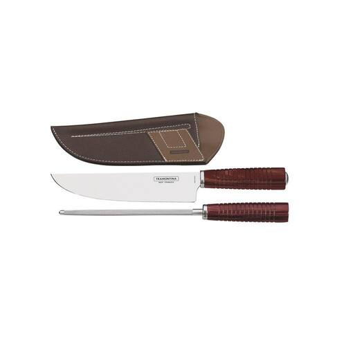 Jogo para Churrasco Tramontina em Aço Inox e Cabo Vermelho Polywood com Bainha de Couro 2 Peças - Churrasco - 21199/795 Itens Inclusos: 21144078 - Chaira 8" Polywood - 1 peça 21141078 - Faca para Carne 8" - 1 peça