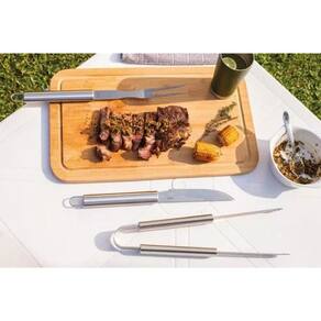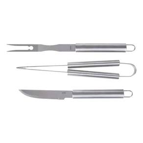 Especificações: :: Marca: Mor :: Cor: Prata :: Material: Aço Inoxidável :: Acessórios: Faca, Garfo, Pegador :: Indicação e Uso: Perfeito para reuniões familiares, confraternizações e momentos de descontração, este conjunto é indispensável para quem valoriza um churrasco bem preparado. :: Observação: O design funcional dos cabos inclui aberturas que permitem pendurá-los; - Os cabos longos garantem maior distância das chamas, proporcionando mais segurança e conforto; - O conjunto é resistente à corrosão, garantindo maior durabilidade