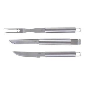 Especificações: :: Marca: Mor :: Cor: Prata :: Material: Aço Inoxidável :: Acessórios: Faca, Garfo, Pegador :: Indicação e Uso: Perfeito para reuniões familiares, confraternizações e momentos de descontração, este conjunto é indispensável para quem valoriza um churrasco bem preparado. :: Observação: O design funcional dos cabos inclui aberturas que permitem pendurá-los; - Os cabos longos garantem maior distância das chamas, proporcionando mais segurança e conforto; - O conjunto é resistente à corrosão, garantindo maior durabilidade