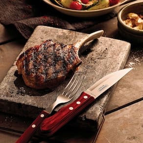 Informações Gerais: - Lâminas de aço inox. - As lâminas das facas têm maior durabilidade do fio devido ao tratamento térmico. - As lâminas dos garfos contam com maior espessura e uma estampagem do aço que garante maior resistência, evitando deformações. - Os cabos de madeira tratada Polywood são resistentes à impactos e alta temperaturas garantindo maior resistência e durabilidade. - Rebites de alumínio. - Podem ir à máquina de lavar louças facilitando seu dia a dia.