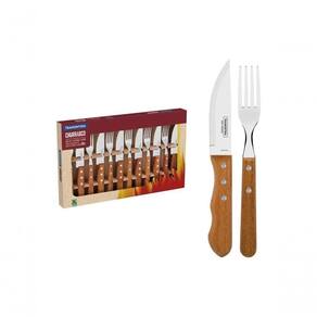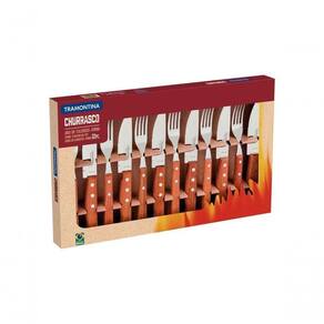 Jogo Para Churrasco Tramontina Dynamic Cabos De Madeira... Para saborear aquele churrasco especial com a família e os amigos, conte com o jogo para churrasco Tramontina Dynamic com lâminas em aço inox e cabos de madeira natural 12 peças. Desenvolvido para lhe proporcionar praticidade e beleza à sua mesa, ele tem peças produzidas com lâminas em aço inox, onde as facas tem maior durabilidade em seu fio de corte devido ao tratamento térmico e os garfos contam com maior resistência devido a estampagem.