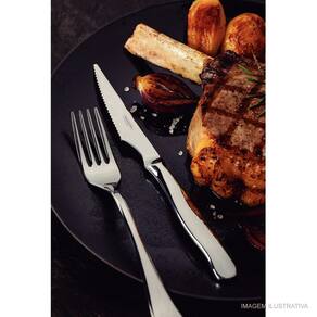 Além de garfos com dentes polidos na parte interna, com formato apropriado para a boca e bordas arredondadas para proporcionar maior conforto no uso. As peças foram produzidas em aço inox, garantindo sua durabilidade e mantendo suas características autênticos por muito mais tempo. O cabo foi feito para se adaptar melhor a palma da mão. Possui equilíbrio harmônico entre cabo e lâmina. O acabamento em alto brilho confere elegância para qualquer ambiente.
