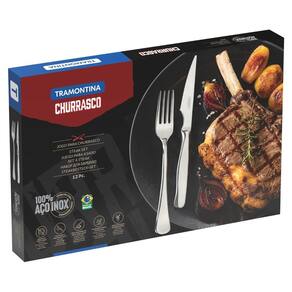 Com o Jogo para Churrasco Tramontina Zurique em Aço Inox Facas Fio Serrilhado 12 Peças, você pode curtir um bom churrasco de um jeito único. O conjunto conta com facas com lâminas temperadas e fios serrilhados, que garantem maior durabilidade no fio de corte e maior resistência à corrosão, e por sua característica de temperabilidade, não riscam as porcelanas.