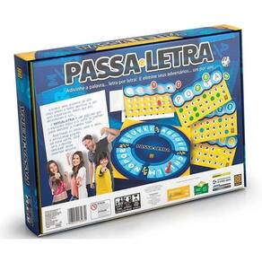 Jogo Passa Letra - Grow Com o jogo Passa Letra - Grow a diversão será garantida. Escolha uma palavra de até cinco letras e tente decifrar a dos seus adversários antes que eles descubram a sua. Acertando as letras, uma a uma, e arriscando palpites na hora certa, você será o grande vencedor desta disputa. Participantes: 2 a 4 participantes Código: 067410 Dimensões aprox. da embalagem em cm: 27,1x37,6x5,5 Peso liq. Aproximado do produto na embalagem: 300g Referência do Modelo: 03587 Certificado Inmetro: CE-BRI/ICEPEX-N 01264-25 - NM300-2004 OCP 0046 Conteúdo da Embalagem: 1 tabuleiro, 1 peão, 4 porta-palavras, 92 fichas cartonadas, 20 cartões tampa-letras e manual de instruções. Composição/material: Cartonado, Plástico Idade recomendada: a partir de 8 anos Garantia: 90 dias contra defeitos de fabricação pelo fabricante Imagens meramente ilustrativas. As cores e tonalidades podem variar. Gênero - Meninas Meninos Unissex Idade - 8 Anos 9 anos 10 Anos 11 Anos A partir de 12 Anos Tipo - Jogo de Tabuleiro Jogo Pedagógico Raciocínio Lógico Ean: 7908010135879