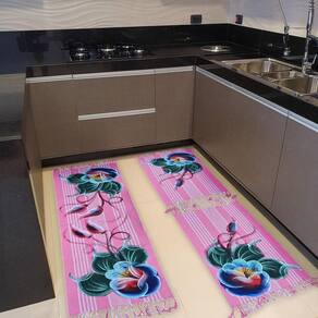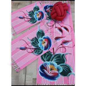 Jogo Passadeira Cozinha Kit 3 Pçs Tear Rustico Pintado A Mão