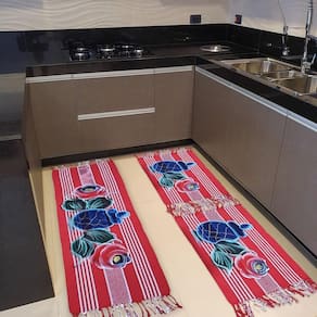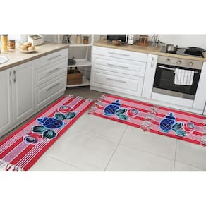 Jogo Passadeira Cozinha Kit 3 Pçs Tear Rustico Pintado A Mão