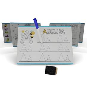 Conteúdo da Embalagem: 08 Cartelas educativas frente e verso contendo Vogais e Numerais; 05 atividades de contorno; 01 Caneta dry eraser; 01 Apagador