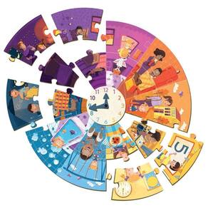 Conteúdo completo inclui quebra-cabeça com 20 peças e relógio de ponteiro.