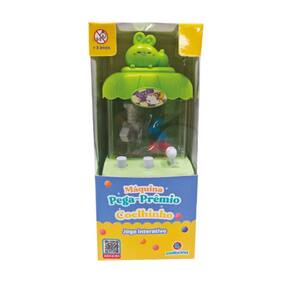 Máquina Pega-Prêmio Dinossauro: uma aventura jurássica cheia de emoção! Controle a garra com a alavanca e os botões, capture a bolinha e leve até o compartimento de prêmios. Diversão garantida com um dinossauro super divertido que transforma cada jogada em uma conquista!
