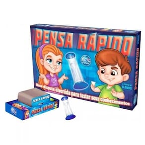 Jogo Pensa Rápido - Pais E Filhos Descrição: O Jogo Pensa Rápido da Pais e Filhos é uma incrível disputa na qual só vence quem for ágil e tiver o maior conhecimento. Para jogar é simples, com a ampulheta em ação o participante deverá dizer as palavras correspondentes da carta. Se ele conseguir, ganha a carta para a pontuação final. Se não, ela é descartada. Ao final, vence quem tiver o maior número de cartas. Chame os amigos e familiares e divirta-se. Idade: 8 anos+