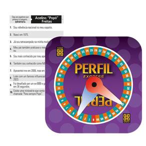 Perfil Express Personalidades é uma nova forma de jogar o clássico da Grow. A temática desta versão engloba exclusivamente personalidades nacionais e mundiais.O jogo traz seis divertidas categorias que vão testar o conhecimento do pessoal: cinema e TV, música, influenciadores, esportistas, personalidades históricas e outras.Cada cartela tem 10 dicas que valem até 10 pontos. A primeira dica é menos reveladora, e as seguintes, de maneira progressiva, aumentam mais as chances de acerto. Quem nunca quis desafiar seu conhecimento com os amigos de uma maneira rápida e emocionanteReúna o pessoal para aproveitar ao máximo este rico conteúdo Homologação Inmetro: CE-BRI/ICEPEX-N 01264-25-16 Marca: Não Informado Ean: 7908010147421