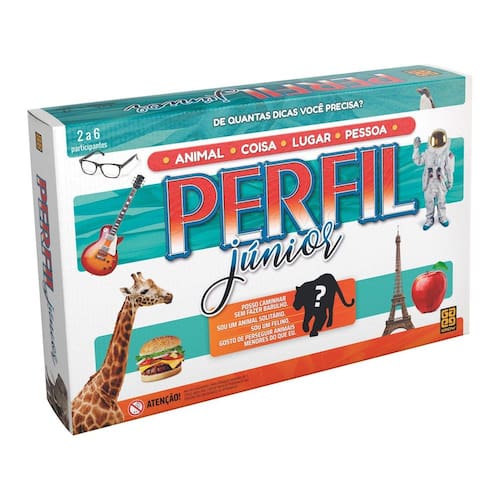 Jogo Perfil Júnior - Grow O Jogo Perfil Júnior de Tabuleiro Grow traz cartas com dicas sobre pessoas, personagens, animais, coisas ou lugares para você deduzir de quem é o perfil em questão. Quanto menos dicas você utilizar, mais pontos irá ganhar! Um divertido jogo que testa seus conhecimentos e sua capacidade de dedução.