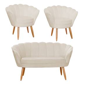 Jogo Pétala Namoradeira e 2 Poltronas Estofada Para Recepção Suede Bege - LM DECOR