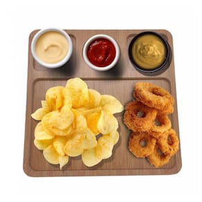 Linda petisqueira para encantar ao servir seus amigos ou cliente. Ideal para petiscos e frios. Com 4 compartimentos permite deixar seus petiscos organizados e com linda apresentação