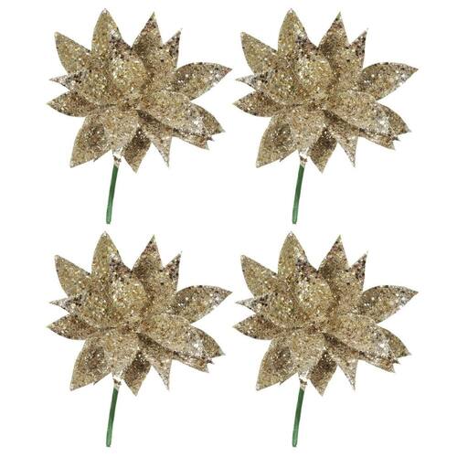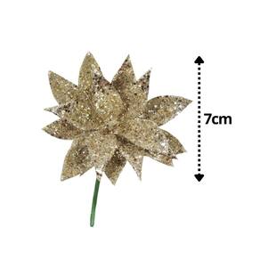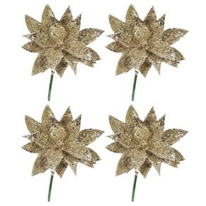 -04 Unidades Folhagem Pick Natal Glitter Especial Champanhe 7cm x 16cm - Magizi