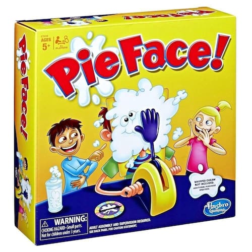 - Os jogadores testam sua sorte neste jogo de doce suspense! Gire o spinner e gire as alças. Quem vai ficar com cara de torta? O emocionante jogo Pie Face é cheio de diversão e suspense, e alguém está fadado a ficar chapeado! Basta colocar um delicioso chantilly de casa na mão da unidade de jogo e começar a girar as alças. Pode disparar a qualquer momento! Os jogadores marcam um ponto para cada vez que giram a manivela sem ficarem com cara de torta, e aquele que marcar 25 pontos vence.