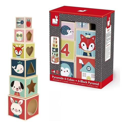 Transforme o aprendizado do seu bebê em uma brincadeira divertida! O Jogo Pirâmide de 6 Blocos Baby Forest da Janod é feito em madeira de alta qualidade, com pintura à base de água, ideal para crianças a partir de 1 ano.