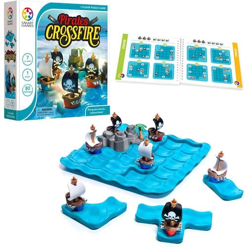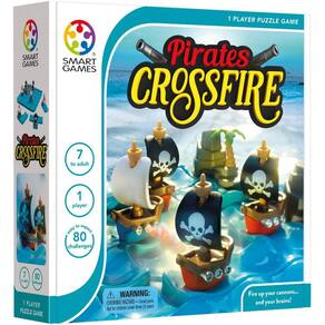 SmartGames Pirates Crossfire é um jogo de tabuleiro 'linha de visão' que apresenta quatro modos de jogo: Total War, Peace, Pirates Win e Navy Wins. Em cada um dos 80 desafios incluídos os jogadores devem encaixar os navios piratas e da marinha no tabuleiro de jogos para que haja - ou não - a linha de visão para os navios se destruirem. Pirates Crossfire é um jogo desafiador para crianças e adultos, os desafios variam de fácil a especialista. Possui peças intrincadas de alta qualidade.
