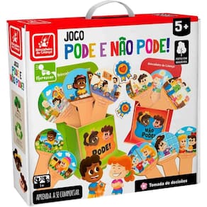 Dentre tantos desafios que existem ao criar e educar uma criança, ensiná-las o que é certo e o que é errado ficou mais fácil com o Jogo Pode e Não Pode! São 24 plaquinhas divididas entre ações que podem ser feitas e ações que não podem ser feitas. A partir disso o jogo começa, as crianças vão escolher em qual caixa colocar as plaquinhas, e a cada vez que colocarem a plaquinha na caixa certa ganham uma medalha.
