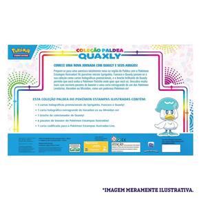 Comece uma nova jornada com quaxly e seus amigos Prepare-se para uma aventura totalmente nova na região de paldea com o pokémon estampas ilustradas Os parceiros iniciais sprigatito, fuecoco e quaxly juntam-se à sua coleção como cartas holográficas promocionais, e o broche brilhante de quaxly permite que você exiba o pokémon patinho onde quer que você vá. Descubra muito mais com incríveis pacotes de booster e uma carta extragrande de um dos pokémon lendários, koraidon ou miraidon, como um poderoso pokémon ex Esta coleção paldea do pokémon estampas ilustradas contém: - 3 cartas holográficas promocionais de sprigatito, fuecoco e quaxly - 1 carta holográfica extragrande de koraidon ex ou miraidon ex - 1 broche de colecionador de quaxly - 6 pacotes de booster do pokémon estampas ilustradas - 1 carta codificada para o pokémon estampas ilustradas live. - contém 39 unidades de cartas no formato 63mm x 88mm e 1 unidades de carta no formato 133mm x 187mm.. - registro 008140/2021