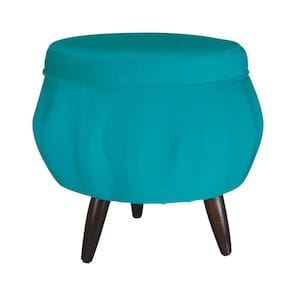 Jogo Poltrona Estofada Com 1 Puff Pés Palito Clínica Pétala Suede Azul Turquesa - LM DECOR
